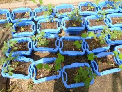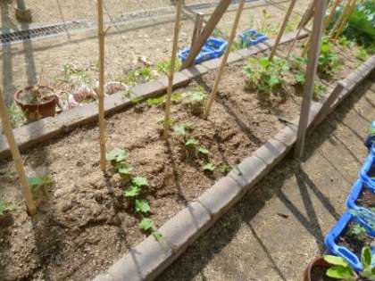 2年生は、ミニトマト、えだまめ、オクラ、ナスの中から希望の苗を植えました。