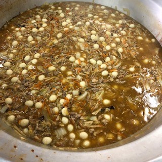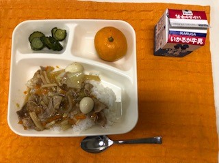 今日の中華丼には、うずら卵のほかに、豚肉、しょうが、はくさい、たまねぎ、にんじん、しいたけ、たけのこが入っています。