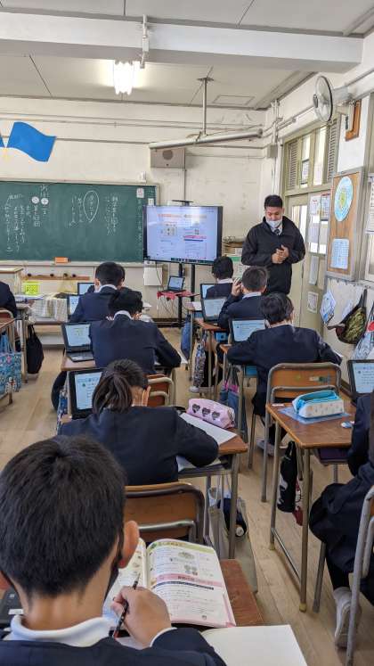 タブレットのデジタル教科書を使い、たしかめの問題を解いています。自分で操作するので、何度も振り返って確認することができます。