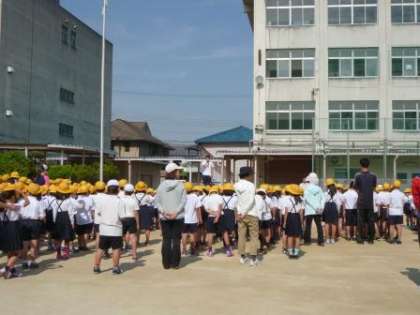 今日は、どの学年の人たちも、動かないでまっすぐ並んで話を聞くことができていました。