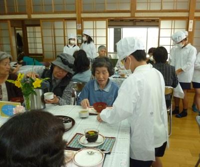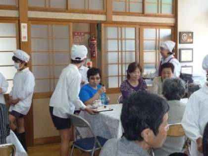 今日は6年1組の人たちが、巽会館に来られる方の、食事の配膳や後片付けのお手伝いに行きました。