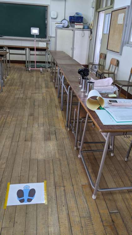 感染症予防として場所を広くとって行っています。一日1学年ずつ検査しています。