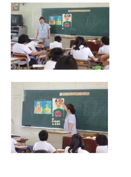 今日は5年生の栄養指導でした。「朝ごはんを食べよう」という題で話がありました。また、朝ごはんには、赤、黄、緑の3つの栄養が入った食事をしないといけないというお話もありました。朝ごはんを食べないと、体が働かないので、しっかり食べてきてほしいです。