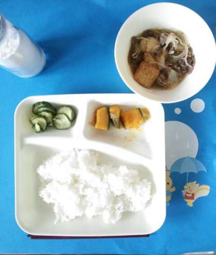 今日のすき焼き煮は個別対応献立(ふ)でした。