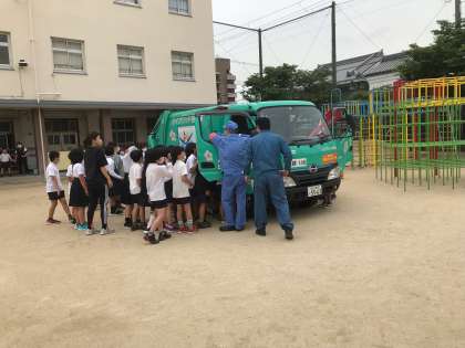 ゴミについて学習しました。パッカー車に、興味津々でした。