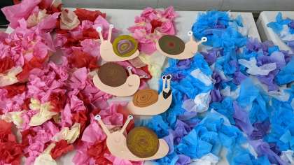 今年最初のあゆみの時間でした。お花紙と色画用紙を使ってあじさいとかたつむりを作りました。みんなの作った物を集めるととてもにぎやかになりました。