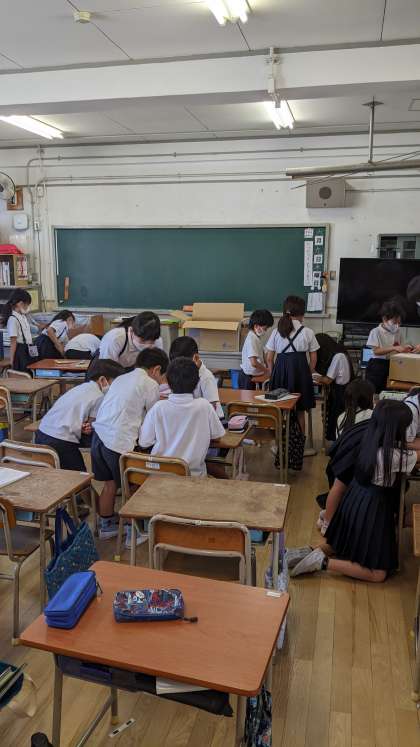 ペア学年で、巽フェスティバルにむけての準備をしています。難しいところは上の学年が担当し、下の学年の子がやりやすいところをやってもらっていました。いろんなアイデアを出し合って楽しく準備していました。