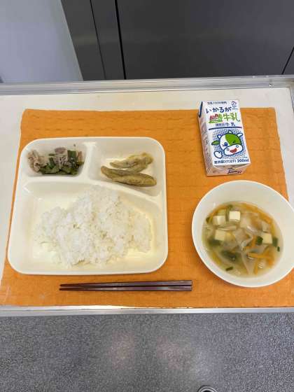 今日の給食には、1年に3度収穫出来ると言われる三度豆が出ました。