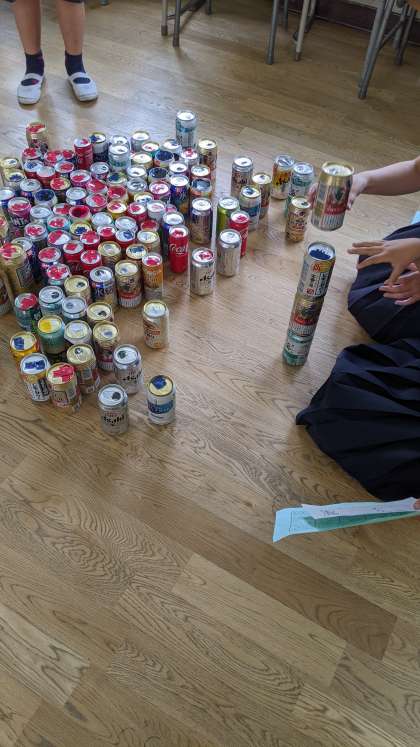 「あきかんつみ」いくつ積めるかな?!今のところ最高は11個だそうです。