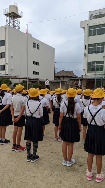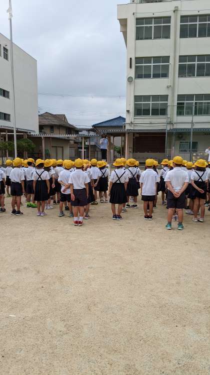 1学期も後1週間となりました。校長先生のお話は1学期の生活全般のまとめについてでした。生活指導の先生から、集団登校について、看護当番の先生からは今月の生活目標についてのお話がありました。
