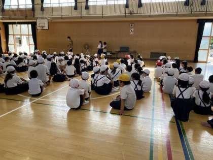 ゴール目がけて一生懸命ボールを投げ、見事ゴールしたときにはみんなで拍手をして喜びました。
