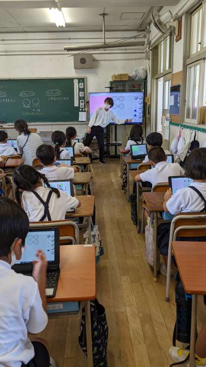 1組と同じく、プログラミングです。うまく指示を出して、岩を飛び越える命令を作りました。