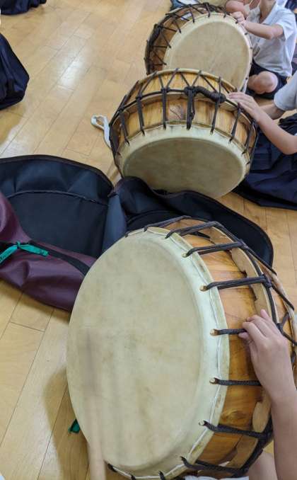 発表会に向け、高学年は「サムルノリ」をしています。ソンセンニムにリズムを教えてもらい、楽譜も見ながら楽器ごとに練習しています。みんなで合わせると、迫力があります。今日も新しい部分を覚え、みんなで演奏できる部分が増えました。