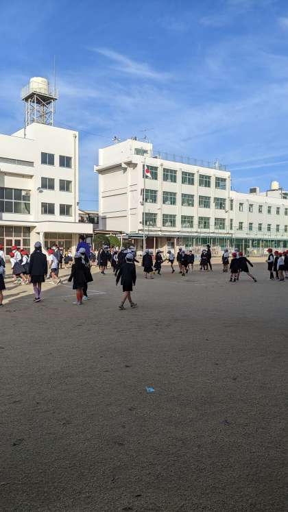「ころがしドッジボール」をしました。ペアの人と外野に行ったり、逃げたりしました。ボールがはねないように転がすのは意外と難しそうでしたが、うまく転がしました。後半はボールを増やして楽しみました。