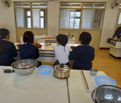 ご飯とみそ汁を作りました。ご飯は中の様子が分かるガラス鍋で炊き、お米の様子を観察しました。みそ汁も出汁のいい匂いのする美味しそうなみそ汁ができました。