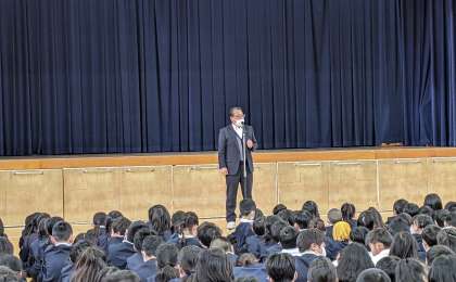 校長先生が、長かったこの二学期に皆さんが頑張った事をたくさん紹介してくれました。そして三学期も、あいさつや、友だちと仲良くすることなど、続けていきましょう、というお話がありました。