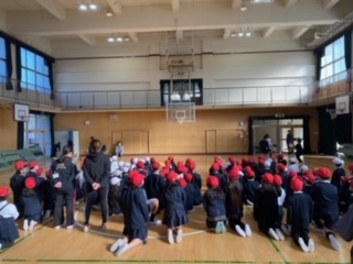 集会委員の人たちがリフティングや、レシーブ、バスケットボールのシュート数などで競い、誰が勝つかペアで予想しました。
