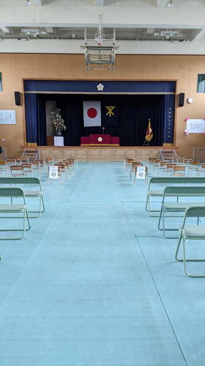 新6年生が登校し、教職員と一緒に入学式準備を行いました。講堂のシートを拭き、椅子を並べ、きれいに会場作りをしてくれました。また廊下や手洗い場など校舎内外の清掃、1年生の教室の清掃をし、きれいに掲示物を飾るなど、いろいろなところでしっかり動いてくれました。
