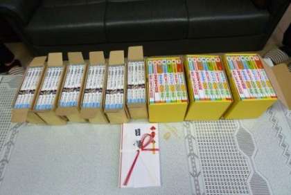 生野リサイクルの会様より図書の本を寄贈していただきました。図書室に置いておきますので、たくさんの人に読んで欲しいとおっしゃっていました。