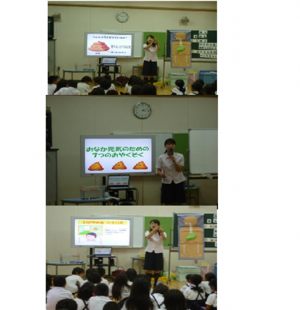 高学年の授業では、おなかの中には、良い菌と悪い菌があるので、良い菌が増えるように、野菜をたくさん食べると良いことも教えていただきました。