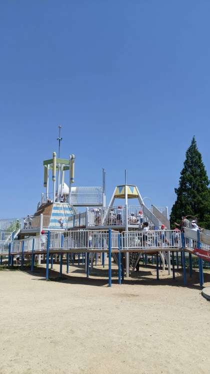 大きな遊具のある公園に移動しました。思いっきり遊んでいます。