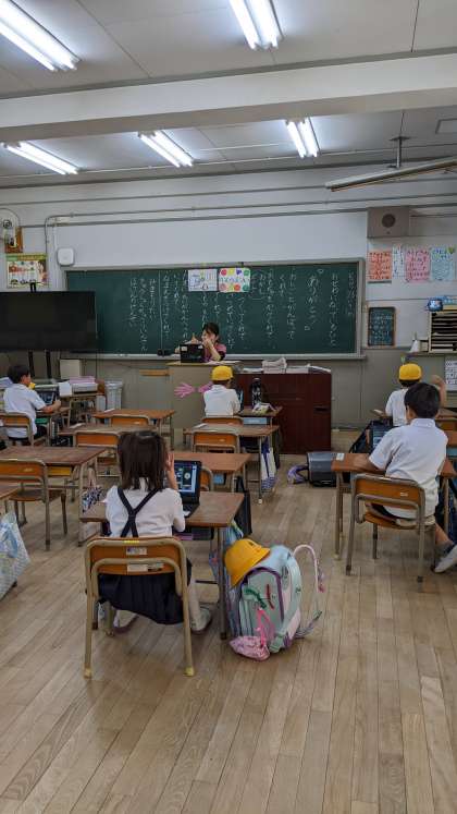 今日は1〜3年生の双方向通信テストを行いました。子どもたちのお家からの元気そうな顔、声が伝わってきました。ご家庭でのご協力ありがとうございました。
