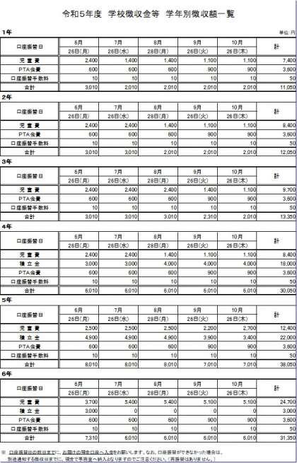 先週金曜日(6月9日)にお子さんを通じて「令和5年度 学校徴収金およびPTA会費の納入について」を配付しております。ご確認ください。