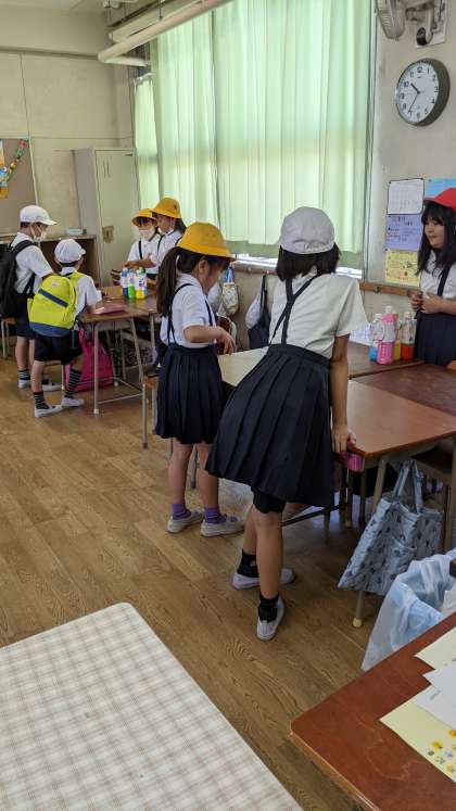カンガルーチームは「わりばしてっぽう」です。打つ場所が低学年、中学年、高学年に分かれていました。よーくねらって!