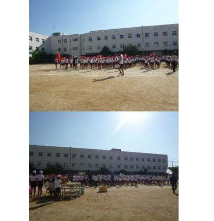 今日は、初めての全体練習でした。入場行進の後、開会式の練習と全体競技「みんんでわっしょい」の練習をしました。