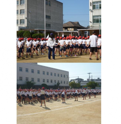 開会式の練習の後、ラジオ体操の練習をしました。それから、全体競技「みんなでわっしょい」の練習をしました。大玉が途中で落ちないように運ぶのが難しかったです。今年は、どうちらが勝つのでしょうか。