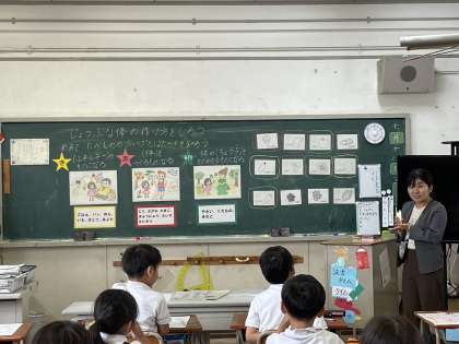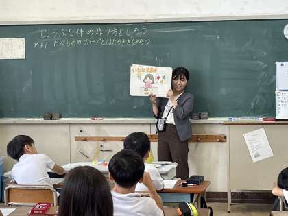 栄養指導の先生に来ていただき、食べ物のグループと働きについて学習しました。どのグループが体のどんな働きになるか、その食べ物とはどんなものがあるか学びました。カードを分けたり、プリントに記入したりしながら、集中して学習できました。
