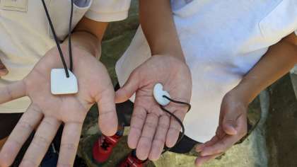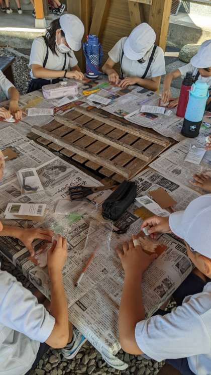 林間最後のプログラムです。宿舎の方に作り方を聞いて、さあ始めます。3種類のやすりで磨いて作りました。頑張って作りたい形にしました。林間のいいお土産ができました。