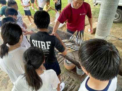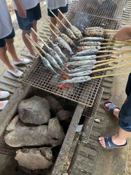 自分たちで取った魚を宿舎の方に焼いてもらってます。