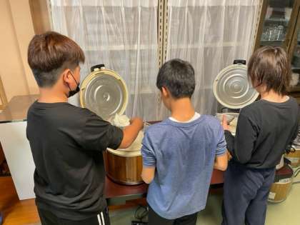 夕ご飯に向けて食事係が準備してくれてます。
