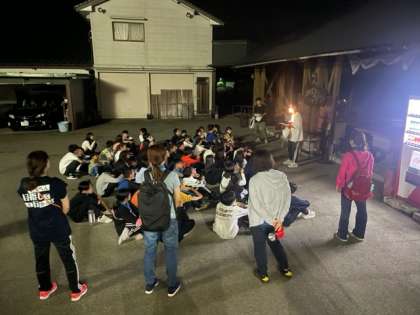 夜道を懐中電灯を持ってクラスごとに進んで行きました。