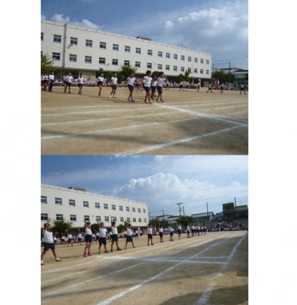 3年生の徒競走、台風の目、団体演技の様子です。