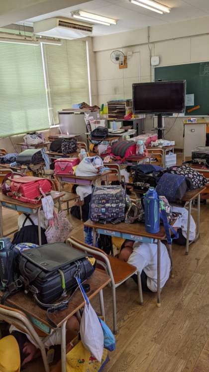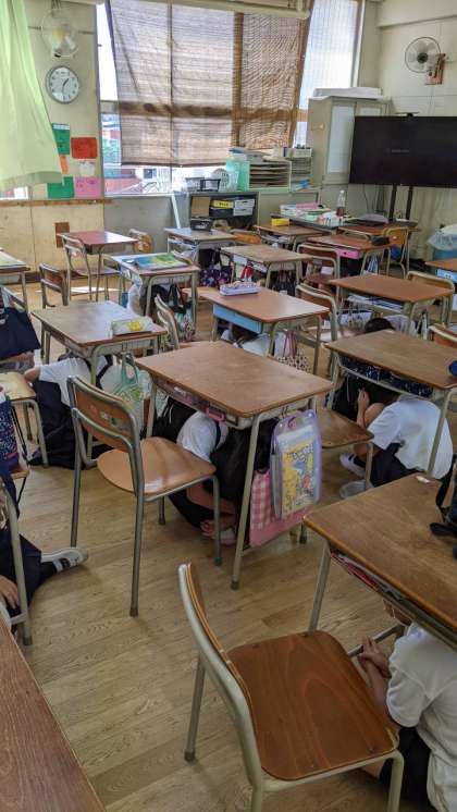 大阪880万人訓練に合わせ、学校でも避難訓練を行いました。屋外から訓練放送が聞こえてきた後、職員室からも放送して訓練を行いました。静かに落ち着いて訓練できていました。今年は関東大震災から100年です。災害はいつ起るかわからないことを頭におき、いざという時は落ち着いて行動できるようにしたいものです。