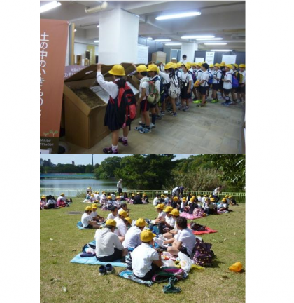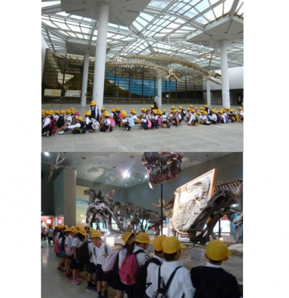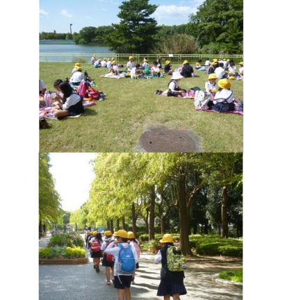 3年生は長居公園に遠足に行きました。大きな恐竜やくじらの骨の展示に驚いていました。植物園にはきれいな花がたくさん咲いていました。広い芝生広場でお弁当を食べて遊びました。
