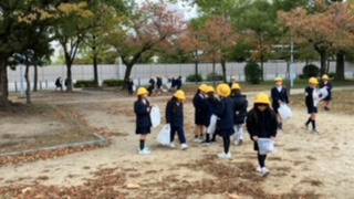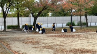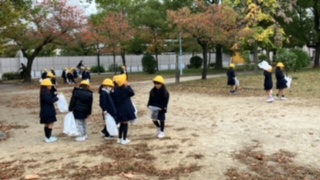 赤色や黄色など、綺麗に色づいた葉っぱやどんぐりなど、夢中になって拾っています。
