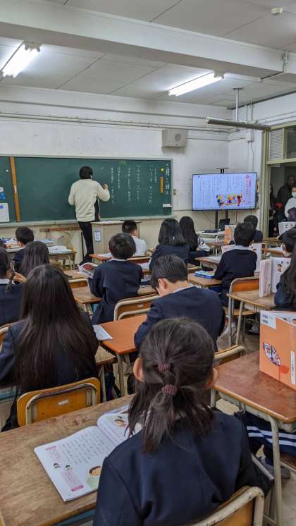 1組は道徳「いい ところ みいつけた」2組は外国語「What animal do you like?」でした。