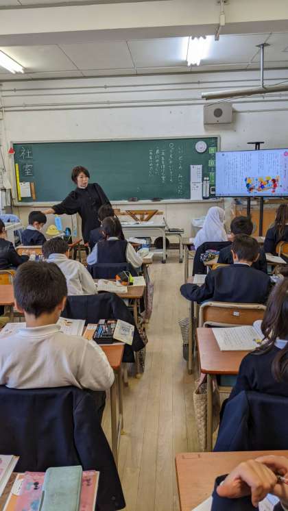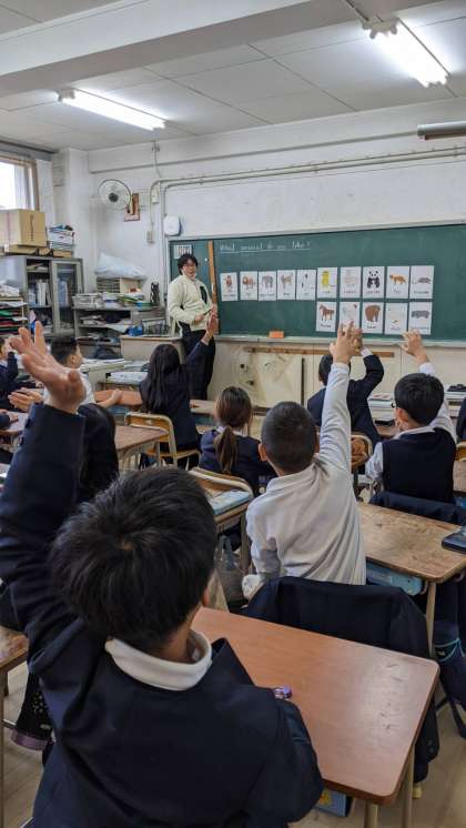 1組は外国語「What animal do you like?」、2組は道徳「いい ところ みいつけた」でした。