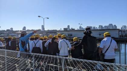 広い敷地内を歩いて見学します。底にごみが溜まった池、土が集められているところなどいろいろ見学しました。