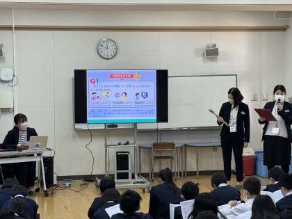 明治安田生命の方がお金と保険の学習を教えてくださいました。課金でのトラブルや保険とは何なのかについて考えるきっかけになりました。「あなたが入りたい保険は?」について考える場面では、たくさんのアイデアが出て、保険についての考えが深まりました。
