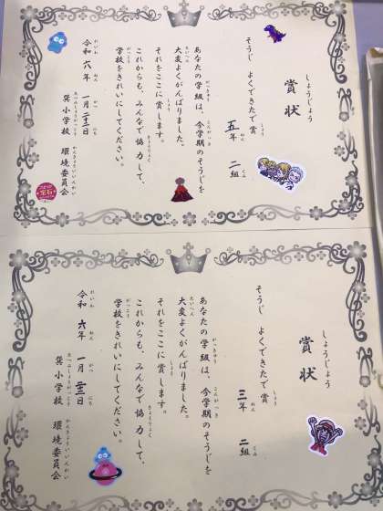 また、環境委員会から、各学級の清掃活動の頑張りも表彰されていました。