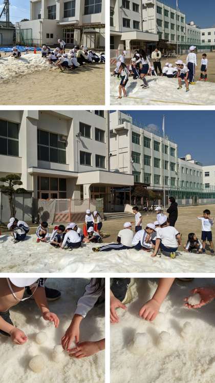 「雪まつり」のあとの雪で遊んでいます。冷たいー、と言いながらも楽しそうです。