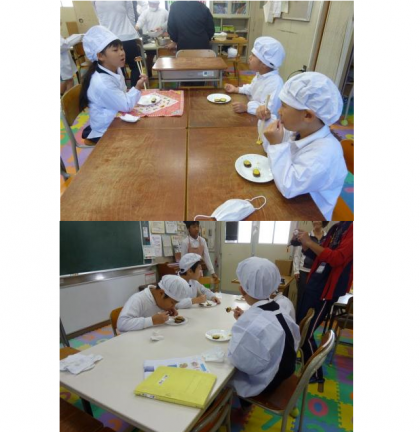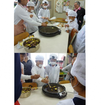 10月19日に合同遠足で、いもほりをしました。その時のさつまいもで、今日はおいもパーティーをしました。2時間目は、1,3,6年生、3時間目は2,4,5年生が、あゆみ学級でさつまいもを焼いて食べました。バターがたっぷりで、おいしそうに食べていました。