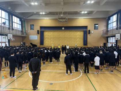 普段、子どもたちの登下校を見守ってくださっている見守り隊の方々をお招きして、お礼の会を行いました。児童会からの感謝の手紙を渡し、みんなで校歌を歌いました。