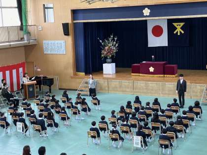 ピカピカの1年生が入学しました!来賓の方々お一人ずつの紹介を「ありがとうございます。」「ありがとうございました。」と返事をしながら聞いてくれる素敵な1年生でした。月曜から元気に登校してくれるのを楽しみに待っています。