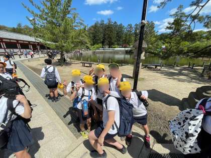 奈良公園を散策しています。楽しくグループ活動しています。いい天気で気持ちがいいです。