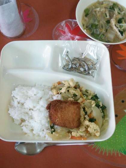 今日は、カツ丼が個別対応献立(卵)となっています。